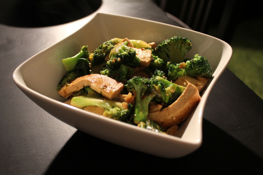 Chop the scallions into 1 inch pieces. Pull apart the broccoli and slice your tofu into 1" slices (or cube, whatever floats your boat).