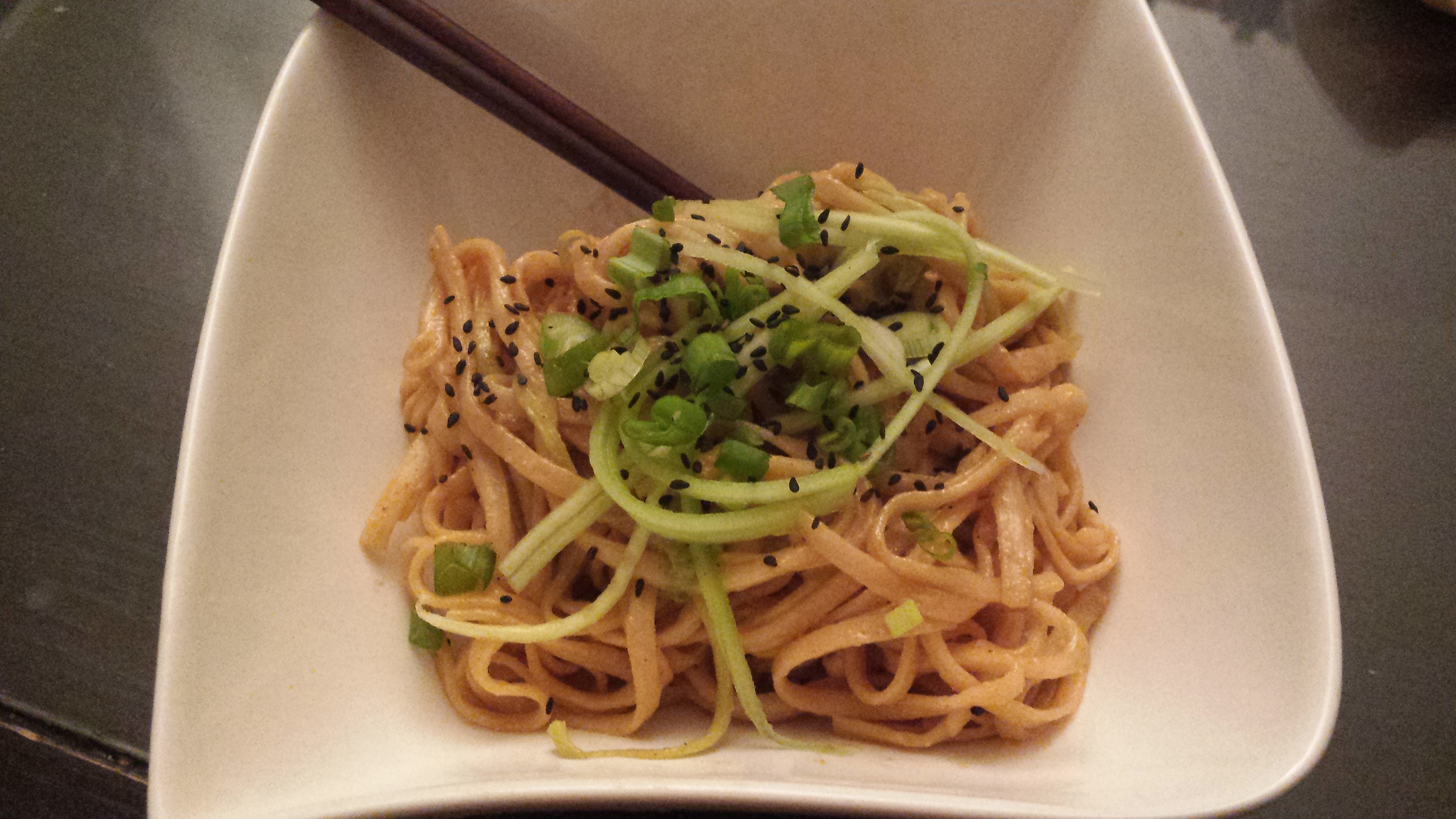 Cold noodles in sesame sauce is one of my favorite recipes--I made it for Tyler a few years back as one dish among many, in our standard, smorgasborgy, Tyler-and-Saee-style meals, and it's since become one of our favorites. The thick sweetness of the sauce and sharp crunch of the fresh onion pair impossibly well with the thoughtful languor of a Camberville eve, so I thought I'd post this recipe in anticipation of spending the end of summer back home, reconnecting with all the things I've loved and lost from the US. So here's a toast(ed sesame seed) to the porches of Somerville, and to the many long nights I look forward to spending on them again soon.