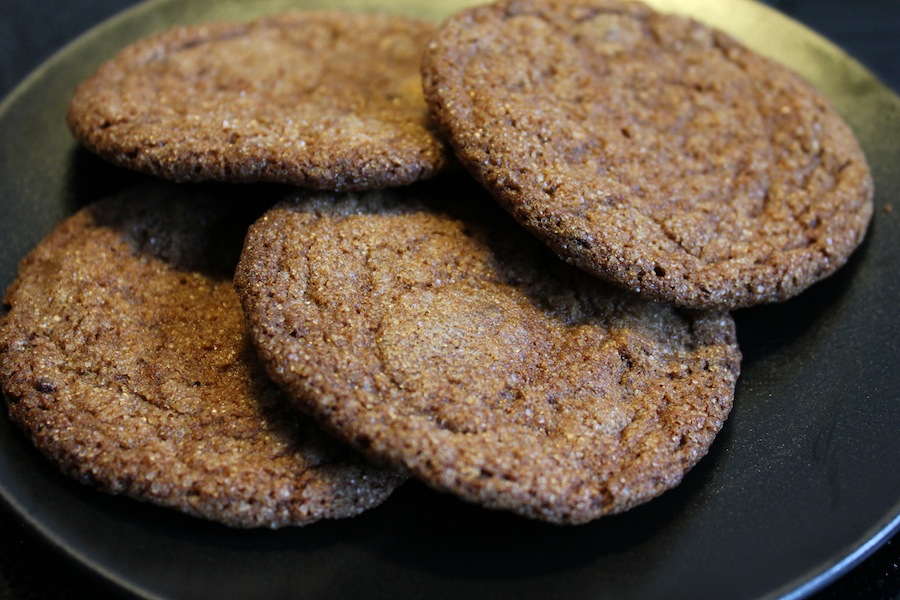 Like a donkey eating a waffle! Ginger molasses cookies with dark chocolate chips. The perfect rainy day food, all warm and melty on the outside. Also, Danny said these were some of the best cookies he's ever had, which made me feel warm and melty on the inside.